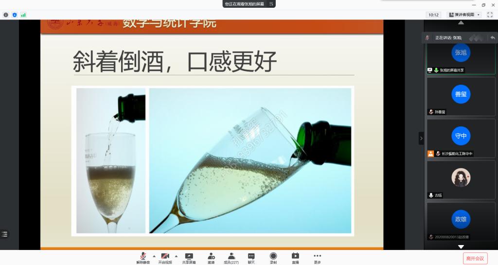 首先孙庆峰通过课程选择、毕业论文等方面为同学们讲述数学与应用数学专业的培养要求,她建议同学们加强与任课老师的沟通,在做好专业学习的同时,积极参加相关领域的比赛,实现更好发展。随后,王效强从学生自身性格特点为出发点,引导学生正确选择适合自己的专业方向,从科研内容上向各位同学展示各个专业的区别,同时鼓励同学积极参加相关比赛,并且有针对性地介绍了近三年统计专业本科生升学和工作的情况。张旭通过举例开酒瓶、解析新型冠状病毒等,生动活泼的讲解了信息与计算科学的重要性,从宏观角度上向各位同学展示信息与计算科学专业与其他两个专业的区别,并且根据信息与计算科学专业的特点,从学习方式、就业方向等方面向同学们展现专业的不同。齐海涛最后从历史沿革、师资力量、科研成果、培养体系、优势特色、发展前景等方面对beat365中国唯一官网作了全面介绍,他建议同学们做专业选择时注意将个人兴趣与国家、社会需求相结合,不断提升创新能力和解决实际问题的能力,做有担当、有社会责任感的新时代“数学人”。