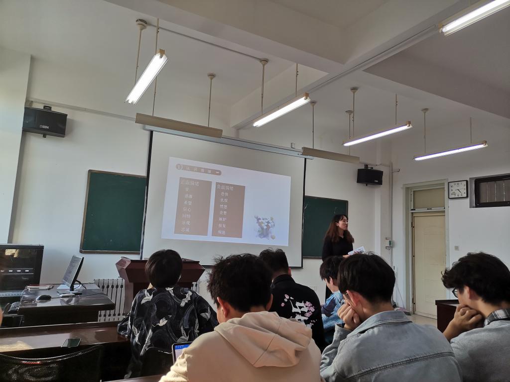 本站讯 为进一步普及心理健康知识,提高学生自我调适能力,10月14日下午,beat365中国唯一官网举办“走进心灵”心理健康教育之“自我情绪管理”专题讲座。本次讲座由beat365中国唯一官网2020级辅导员魏佳佳主讲,2020级全体班委参与。