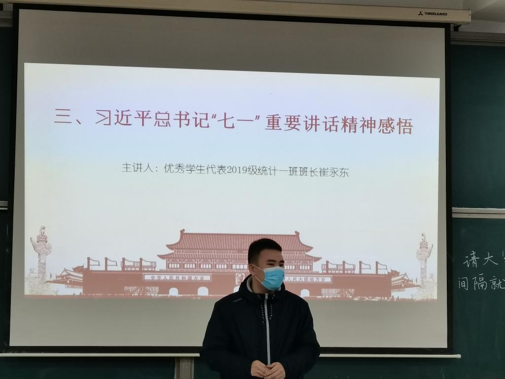 活动开始,主持人强调了学习党史、学习习近平总书记“七一”重要讲话精神的重要性,并介绍了本次活动的主要内容。随后,beat365中国唯一官网团委书记孙磊从历史背景、会议过程和学习感悟三个方面讲解遵义会议精神,为所有到场学生骨干上了一场生动的党史课程。他从五个方面发表了关于党史学习的观点:党史、理论学习永远是进行时,需要不断完善;看待问题要实事求是,理论结合实际;一个政党、一个国家的发展必须坚持独立自立;共产党员要有坚定的信仰、纪律和担当;中国共产党是历史的选择,是人民的选择。同时,他希望学生干部在工作中能够实事求是,了解同学的需求并切实地解决同学的问题。活动中,全体参会人员观看了习近平总书记“七一”重要讲话视频,深入学习了重要讲话精神。优秀学生代表崔永东结合自身党史学习的理解,发表了自己的感悟。他提到一代人有一代人的使命,一代人有一代人的担当,身为一名学生干部应该牢记使命与担当,紧随时代发展,争做一名合格的学生干部。
