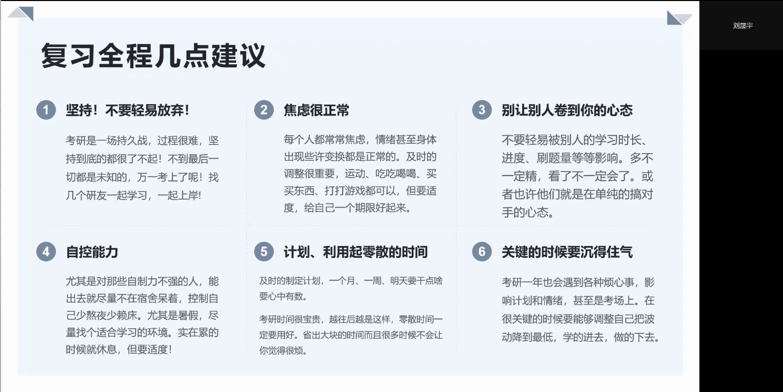 本次考研经验分享会营造了互帮互助、求知问学的良好学风氛围,不仅为同学们的备考之路提供了考研前辈的宝贵经验,也为同学们在考研路上增添了一份信心与从容。