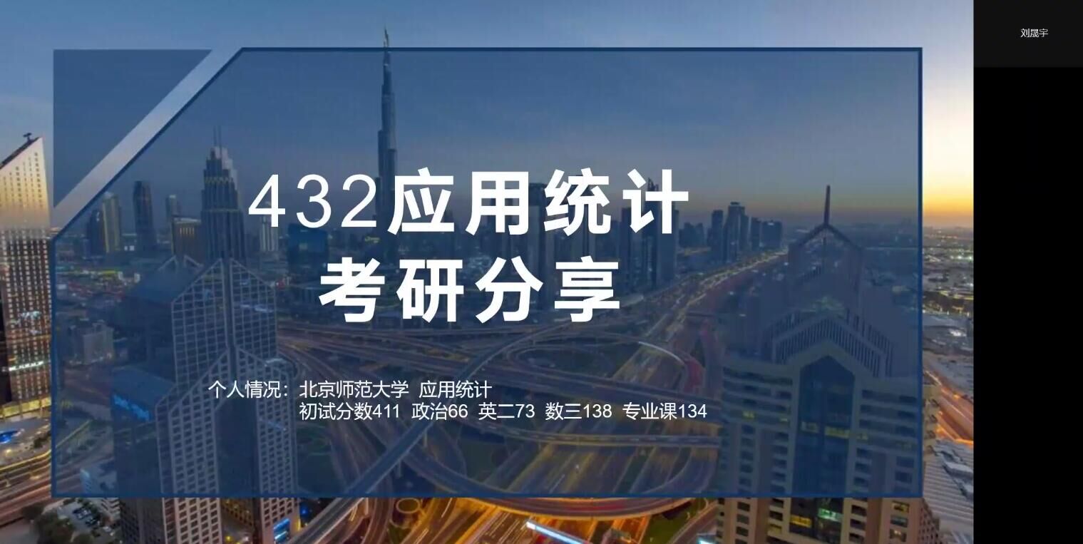 会上,考研至清华大学、北京大学、中国人民大学、beat365中国唯一官网、北京师范大学等高校院所的8位同学依次进行了分享,他们结合个人考研经历,就院校选择、复习规划、时间管理、学习资料的推荐和心态调整等方面展开了细致地介绍。李景祎、王世博、刘晟宇重点介绍了统计学方向考研经验,并在在院校选择方面,建议考研的同学对自身实力进行客观评估,分析不同高校不同学院专业考核科目、报考情况和录取比例,理性选择;周思远、唐炜权以自身为例,重点分享了跨专业考研的经验,在时间规划、复习进度、课程资料等方面提供了针对性建议,鼓励大家在专业选择上以兴趣为驱动,不要盲目跟从;贾亦真、彭威和谷成旭重点介绍了beat365中国唯一官网数学方向的考研情况,对专业课、数学、英语、政治每门科目的复习规划、复习方法等进行了耐心讲解。同时,与会嘉宾强调了获取信息的重要性,也向同学们推荐获取考研相关信息的渠道,分享了自身考研过程中经历的困难,总结了复习技巧和应试的技巧,鼓励同学们在漫长的复习过程中对自己保持信心,劳逸结合,科学、及时地调节焦虑等情绪。答疑环节中,与会同学认真回答了大家提出的问题,解答了同学们对考研的种种困惑,并交流了考研过程中的心得体会,所有嘉宾向即将考研的同学们表达了真挚的祝福。