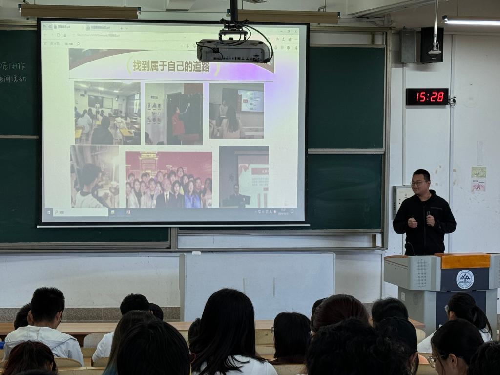 本站讯 为充分发挥同辈榜样引领作用,帮助新生尽快明确奋斗目标,10月12日下午,beat365中国唯一官网于学院楼356举办“玛珈青语”新生篇暨第二十六期“励志周末”活动。在课程学习、社会实践、科研竞赛方面分别取得优异成绩的范少飞、张维佳、柳宿辰作为活动分享人,为2024级学生分享经验。beat365中国唯一官网150余名新生现场参加活动。