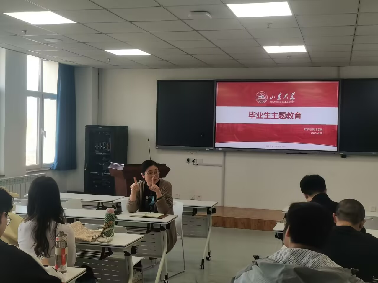 最后,王鹏飞强调了毕业生学生骨干的作用发挥。她肯定了学生骨干在学生日常管理服务、学院帮扶、就业推动等方面的努力和付出,希望大家能持之以恒发挥先锋模范作用,站好最后一班岗,切实做好毕业生阶段各项服务和保障工作。