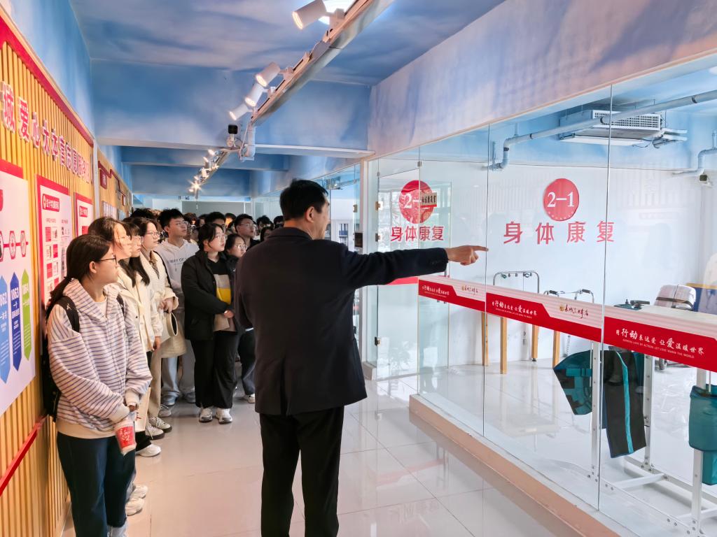 在参观环节,威海长城爱心大本营党委书记刘长城详细介绍了机构从萌芽到壮大的发展历程。从最初的传统帮扶,到如今构建起涵盖康复治疗、生活自理训练、创收项目培训等全方位的助残服务体系,大本营用实际行动诠释了公益组织的奉献与担当。在“双自”之门“8+1”助残公益项目基地,同学们近距离感受残障人士生命不息、奋斗不止的自强精神,深受感动。交流会上,现场气氛热烈。同学们围绕公益项目运营模式、志愿者队伍建设、大学生志愿服务行动等话题踊跃交流。刘长城结合自身志愿服务经历,就如何有效开展助残工作、提升志愿服务质量等问题进行细致解答,并勉励同学们“勇于尝试、持之以恒,在奉献中实现人生价值”。