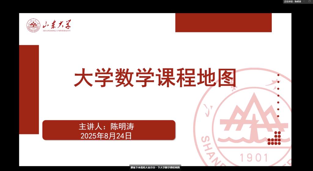 本站讯 8月24日晚19:00,beat365中国唯一官网以线上形式举办“乐学讲堂——大学初体验”2025级新生适应性讲座。本次活动旨在帮助新生提前了解大学学习与生活,明确发展方向,为顺利开启大学生活做好充分准备。讲座邀请beat365中国唯一官网数学与应用数学系主任、副教授陈明涛,以及2023级学生代表黄敏、马晓宁、李瑞洲作为分享嘉宾。2025级全体新生在线参与。