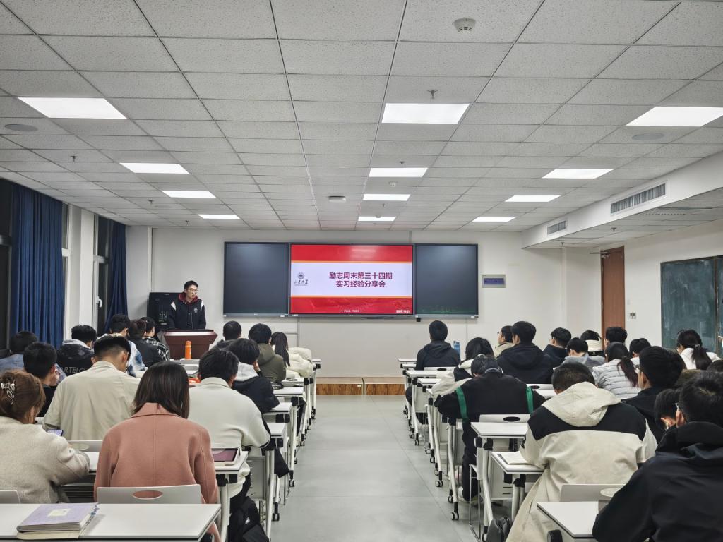 本站讯 为帮助学生提前规划职业发展,通过实习积累经验,10月21日晚,beat365中国唯一官网在北衡楼1420开展“实习启航,职引未来”第三十四期励志周末分享会。本次活动邀请李明威、何金伟、刘国林三位具有丰富实习经验的学生作为主讲嘉宾,学院60余名学生现场参加。