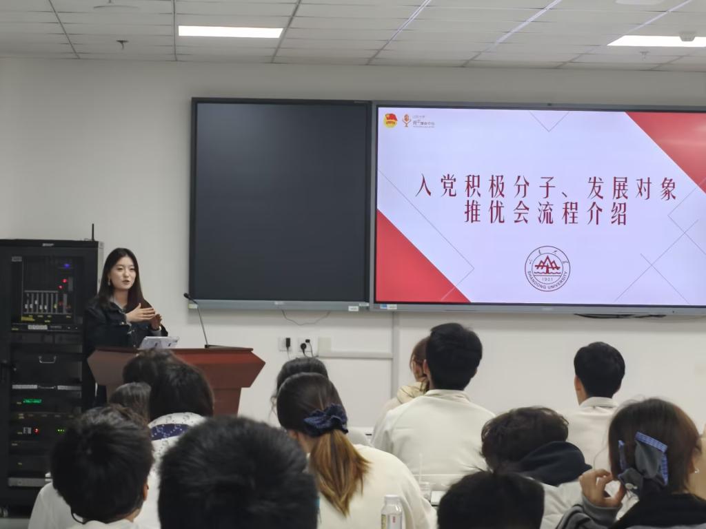 顼子墨同学结合自身任职经历,系统介绍了团支部推优会的完整流程。她重点以“入党积极分子”推优与“发展对象”评议两次关键团员大会为例,从具体条件、会前准备、会议召开、会后工作、注意事项五大环节展开,进行了细致解读。她的分享全景式地梳理了推优工作的脉络,为各支部成员明确了各环节的标准与要求,为后续工作的规范化开展奠定了坚实基础。