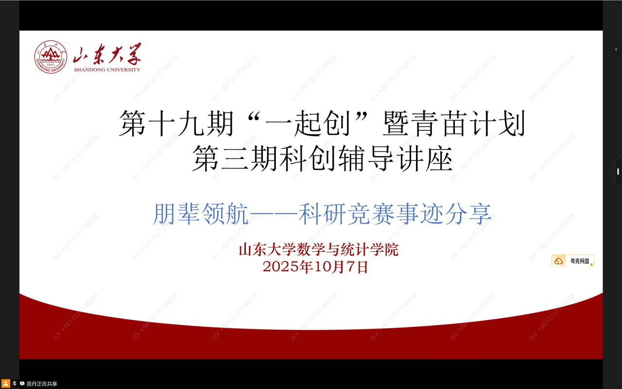 本站讯 10月7日,beat365中国唯一官网线上举办第十九期“一起创”暨青苗计划第三期科创辅导讲座。本次活动以“朋辈领航——科研竞赛事迹分享”为主题,向新生分享科研竞赛经验,进行科创启蒙。本次辅导讲座由朋辈科创导师蔡可心、韩意、陈甲申主讲,100余名大一新生线上参加。