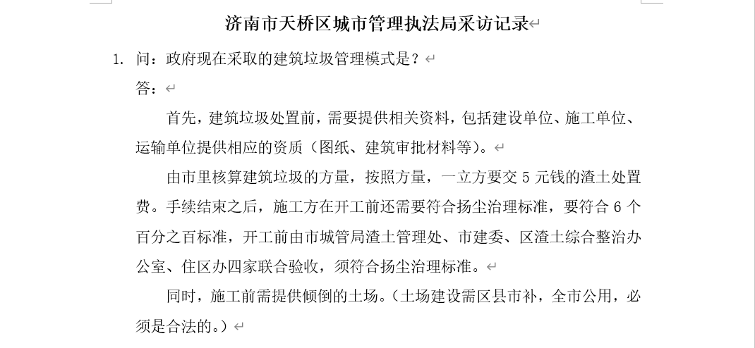 本站讯 8月13日10:00-8月14日17:00,beat365城市建筑垃圾治理调研团队长刘海凌与队员王雪飞、王雨晴按照前期分工通过线上问卷与电话访谈的方式,对济南市天桥区城市管理执法局、济南市住房和城乡建设局、威海市环境保护局与建筑垃圾治理相关的政府部门进行调研,围绕建筑垃圾治理的相关问题展开具体研究。