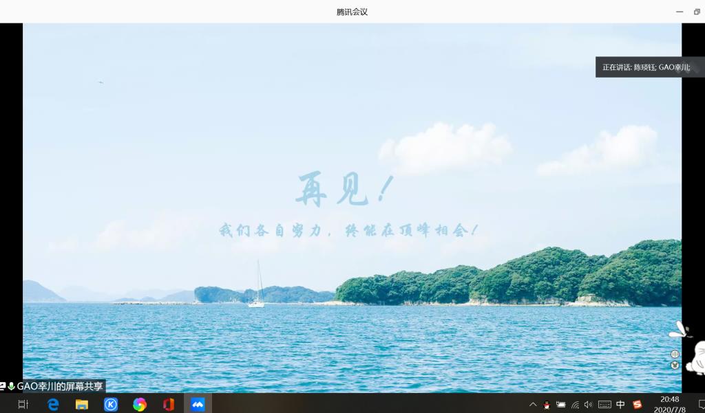 本站讯 2020年7月8日晚上8点,2019级数学类4班于腾讯会议召开以“启航”为主题的最后一次班会,全体同学按时参加。本次会议由班长高锋主持,辅导员王祎璠、班主任高铭威和科研班主任陈琰钰出席,旨在让同学们告别过去,以全新的精神面貌开始新的学期。