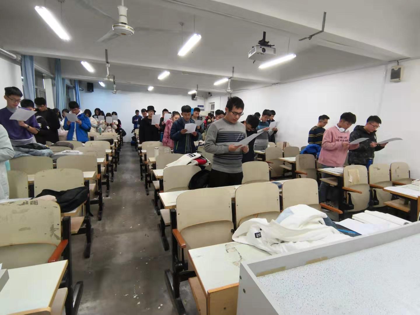 本站讯 2019年12月3日晚,2019级数学4班全体同学于文传楼608举办宪法诵读活动,本次活动由团支书杨智捷组织举行,班长高锋领读,全体同学诵读。开展本次宪法诵读活动旨在增加同学们对宪法的了解程度,更好地懂法,爱法,护法,同时也为迎接12月4日的国家宪法日。