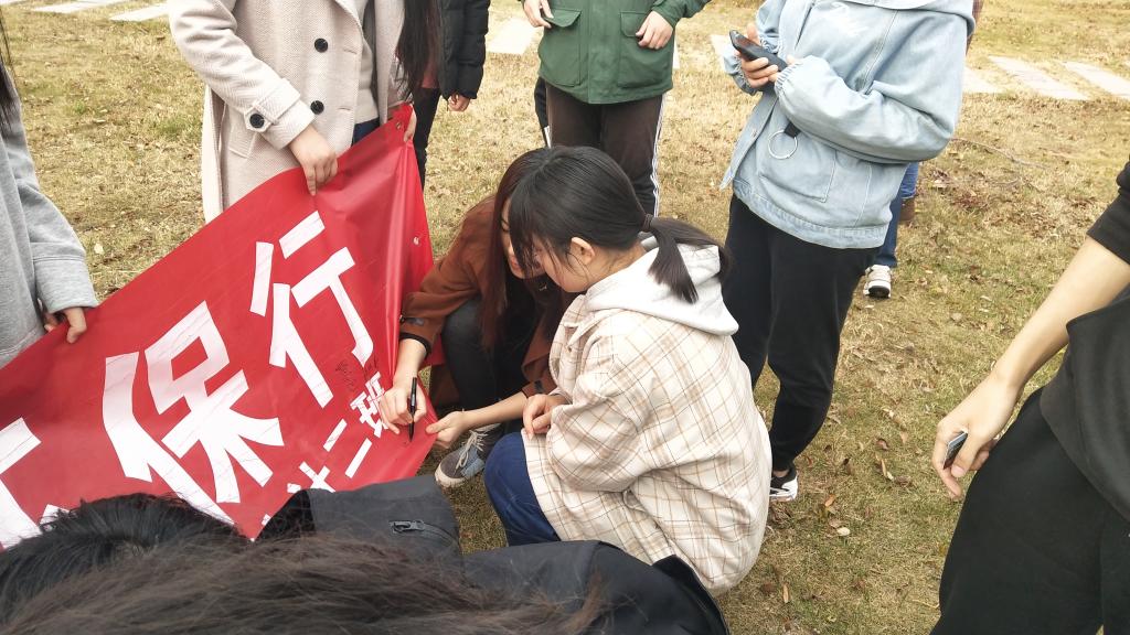 活动伊始,全体同学集结在文心湖畔,放置了本班设计的宣传横幅,吸引过路的学生和游客关注到校园环保问题,让他们意识到环保的重要性,时刻警醒自己不要做出破坏环保的行为,并在横幅上签字以表示对环保行为的支持。宣传结束后,全体同学在文心湖畔以及周围捡垃圾,使文心湖的周围更加整洁与美观。同学们通过体会清理垃圾的不易,从而提高大家的环保意识,在以后的生活中做到不乱丢垃圾,时刻注意环保。