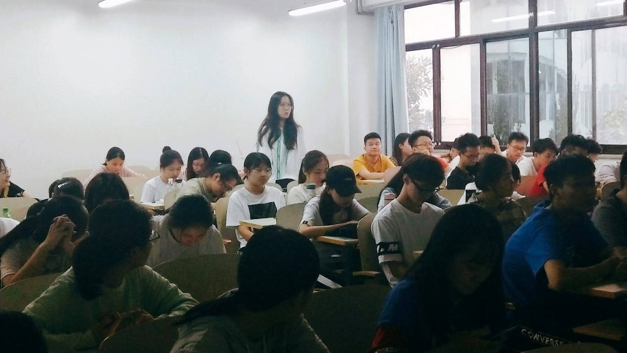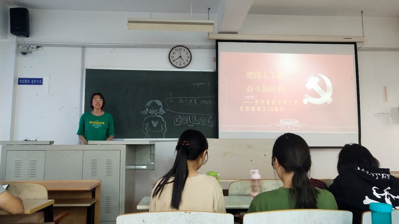 本站讯 2019年9月17日下午,2018级统计学二班于图东216举行了“建国七十载,奋斗新时代”主题班会。穆增超老师,曾德玲,王璇,王祎晨,李昊昱四位学长学姐,2018级统计学二班全体同学参加了此次班会。
