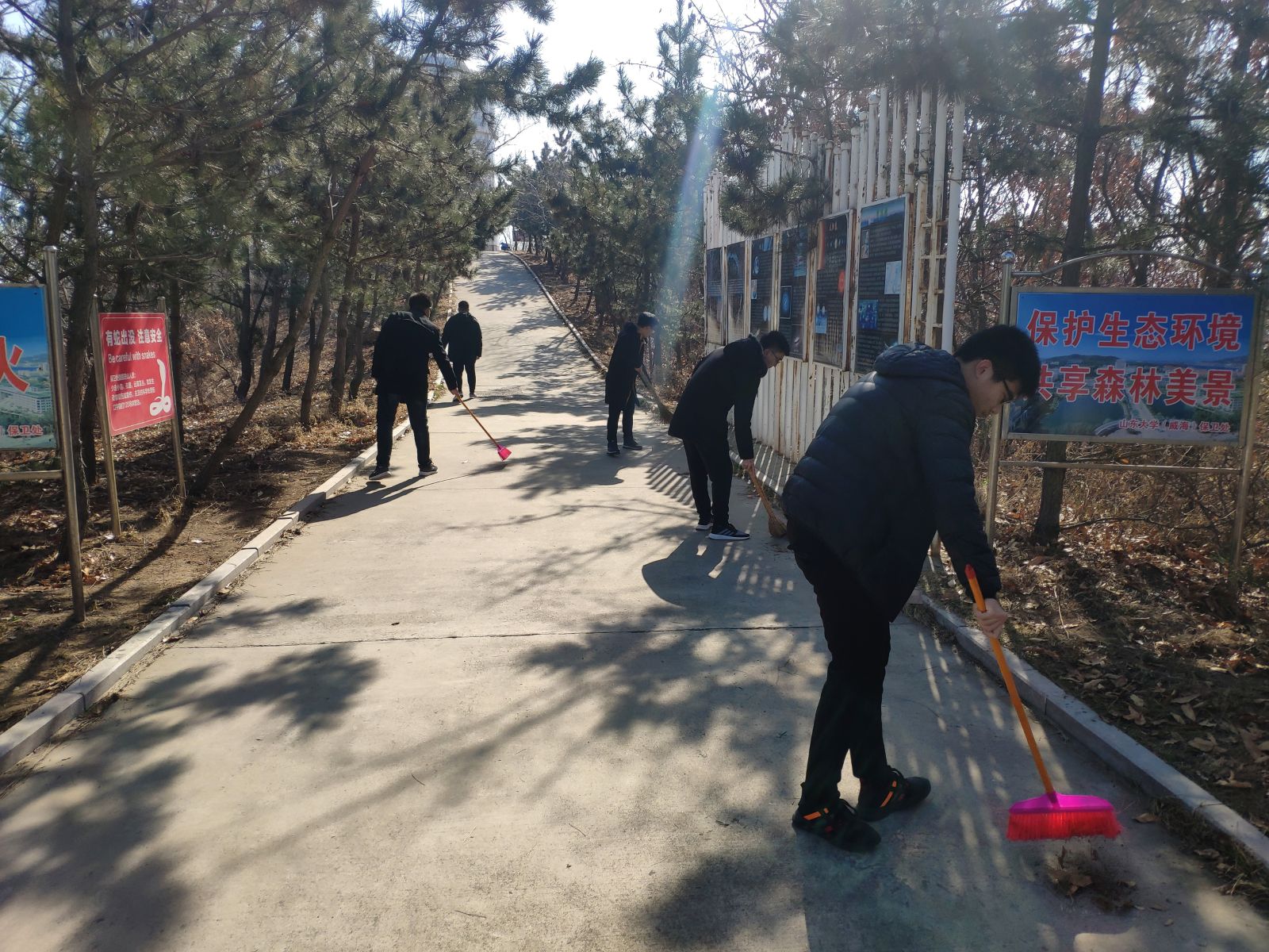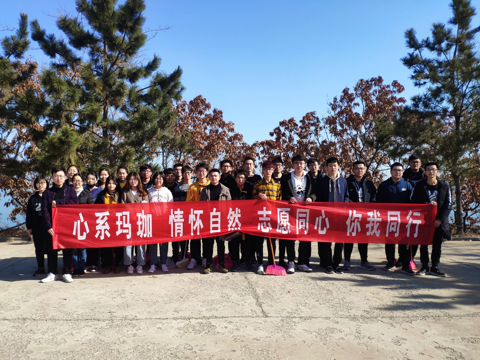 本站讯 2019年3月17日上午9时至11时, 2018级信息与计算科学班在beat365中国唯一官网(威海)玛珈山上举办了由beat365青年志愿者协会主办,2018级信息与计算科学班协办的“心系玛珈、情怀自然、志愿同心、你我同行”清扫志愿服务活动。
