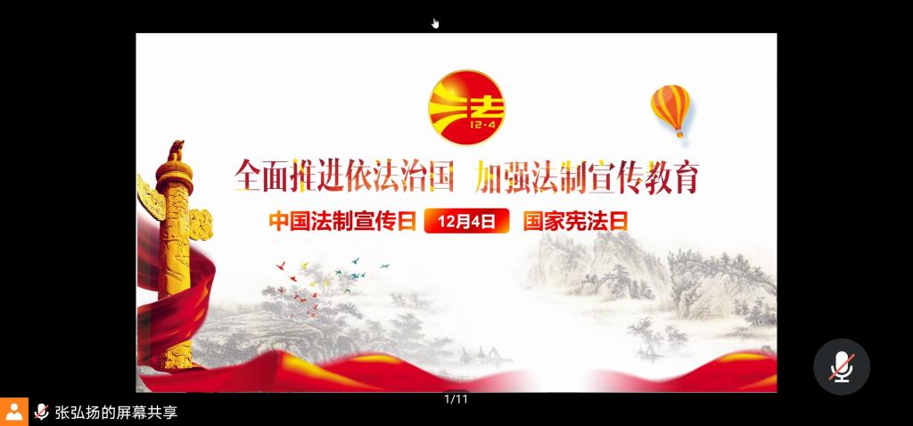 本站讯 2020年12月8日下午17:00,beat365中国唯一官网2019级数学与应用数学班于线上开展了12月主题团日活动,此次活动主题为“全面推进依法治国,加强法制宣传教育——中国宪法日暨法制宣传日活动”。团支书张弘扬主持此次会议,数学与应用数学班全体团员参加。