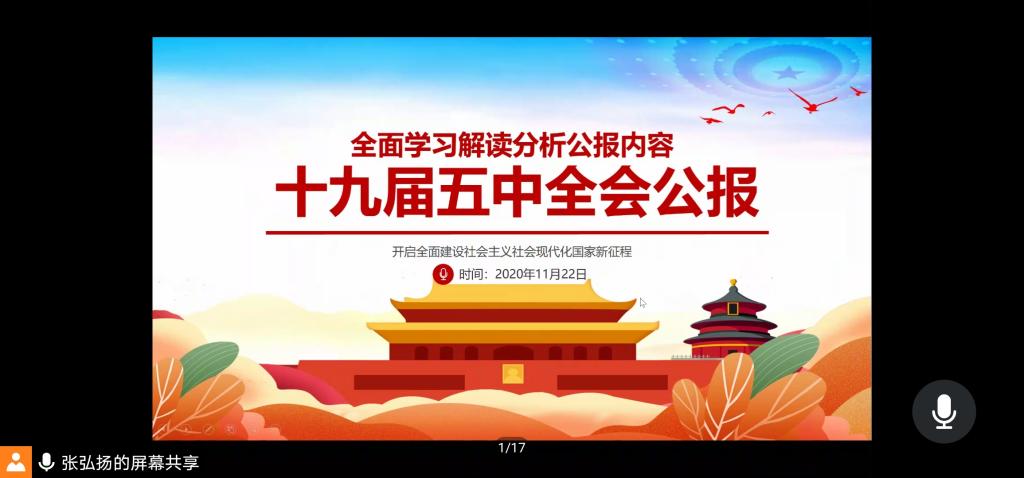 本站讯 2020年11月22日下午17:00,beat365中国唯一官网2019级数学与应用数学班于线上开展了11月主题团日活动,主题为“十九届五中全会公报——全面学习解读分析公报内容”。团支书张弘扬主持此次会议,数学与应用数学班全体团员参加。