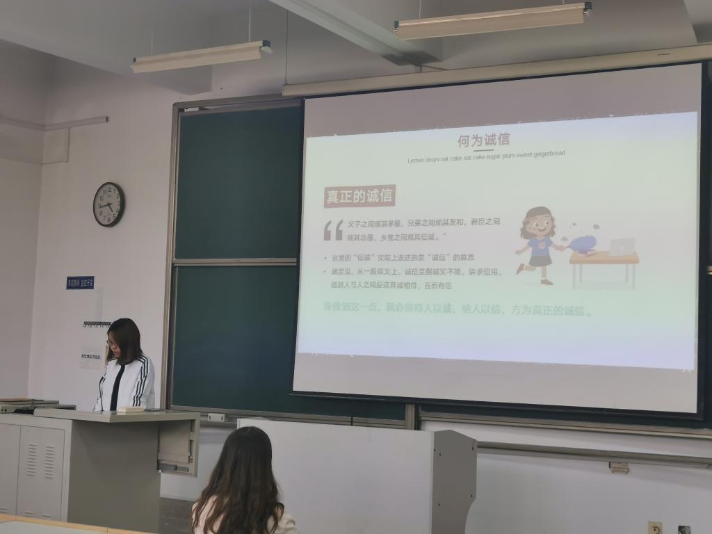 会上,刘志敏向同学们介绍了“青鸟计划”平台。山东青鸟计划是以实习实践、高质量就业、“双创”空间和校地合作为四大支撑,促进青年学子和人才回鲁留鲁就业创业的平台。刘志敏对该平台注册与使用流程、政策进行了详细讲解,鼓励同学们通过青鸟计划迈出大学生实习的第一步,在大学期间提前了解规划个人的职业,以防盲目选择。在诚信教育中,乔靖轶从诚信的基本词义出发,结合历史上因失信造成不良后果的实例引出考试应该遵守诚信的主题,她指出我国是一个具有悠久历史和灿烂文化的文明古国,同学们应弘扬诚信正义,做到诚信考试,只有诚信考试才能达到考试的目的,才能检测出自我学习生活中出现的问题。王祎璠结合学校相关管理规定和历年考试违纪实际案例,提出诚信考试的重要性,强调无论是在校还是日常生活中,任何时候不要抱以侥幸心理,诚信为本,诚实做人。同时,她建议同学们积极参与“青鸟计划”,利用平台契机,参与实践锻炼,树立规划意识,在奋斗中实现青春梦想。