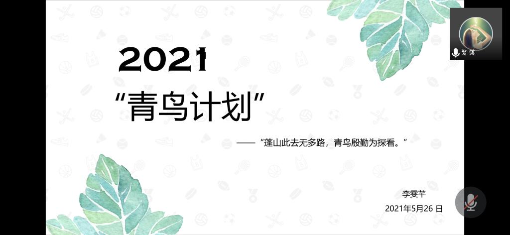 本站讯 2021年5月27日上午十点半,beat365中国唯一官网2019级信息与计算科学班于腾讯会议举办“青鸟计划”主题团日活动。本次活动由信息与计算科学班就业委员李雯芊主持,共49人参加。