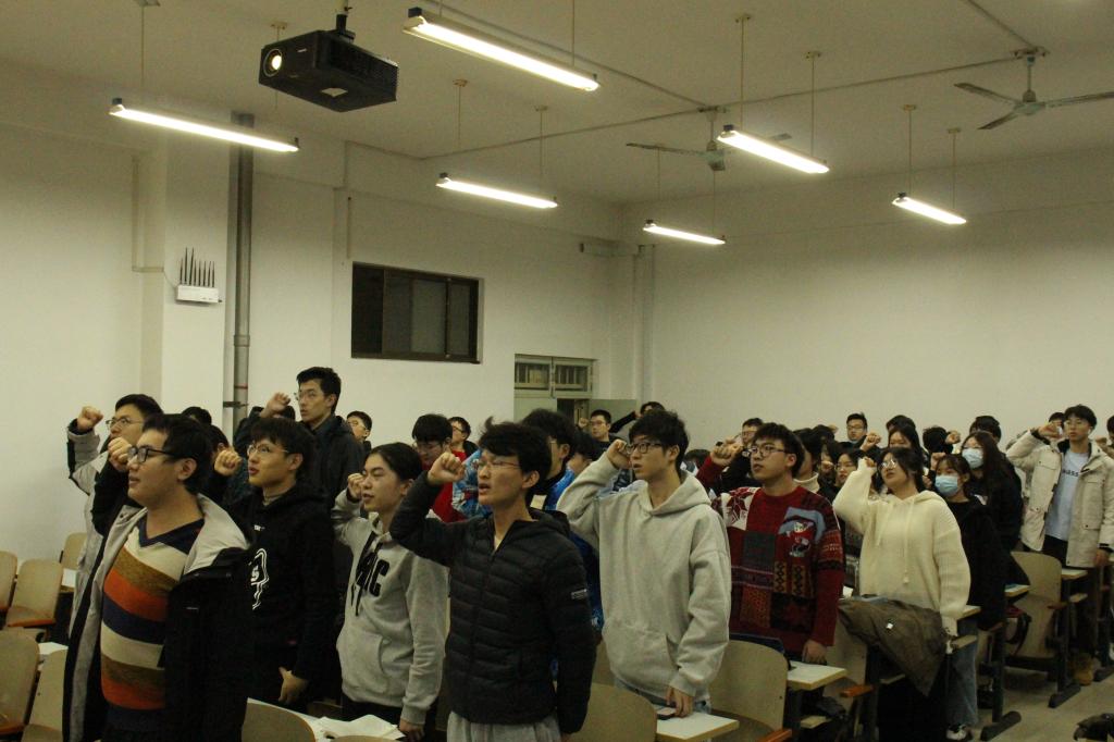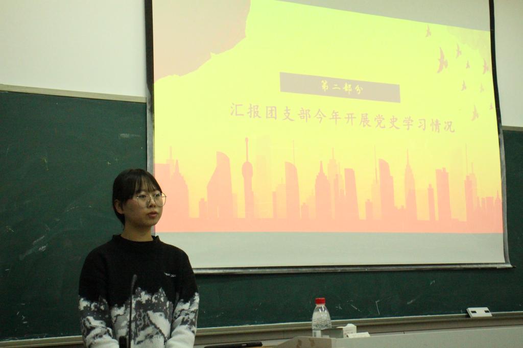 会议伊始,王肖晴简短的介绍了开展本次会议的目的以及会议的主要流程,并带领团支部全体同学唱团歌。随后王肖晴从党史学习完成率、学习速度等方面汇报了团支部今年的党史学习情况,并针对党史学习的完成效率提出建议。接下来,五个团小组分享了每组关于党的十九届六中全会精神、习近平总书记在纪念五四运动100周年大会上的讲话精神以及习近平总书记在庆祝中国共产党成立100周年大会上的重要讲话精神的学习感悟,提出了很多独到的见解,并对小组情况从政治、学习、工作、思想、作风等方面进行了简要说明。在汇报团员先进性评价和民主测评投票情况环节中,王肖晴就上次民主评议的结果向团支部全体同学进行公示。王肖晴对团支部最近的组织纪律情况、学习情况以及本次会议的开展情况进行了总结,指出了目前团支部存在的不足之处,并提出了相关的改善建议与举措。最后,会议在全体团员重温入团誓词的朗诵声中落下帷幕。