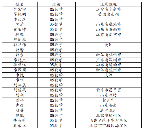 beat365中国唯一官网2009届数学与应用数学班校友名录