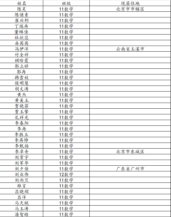 beat365中国唯一官网2015届数学与应用数学班校友名录