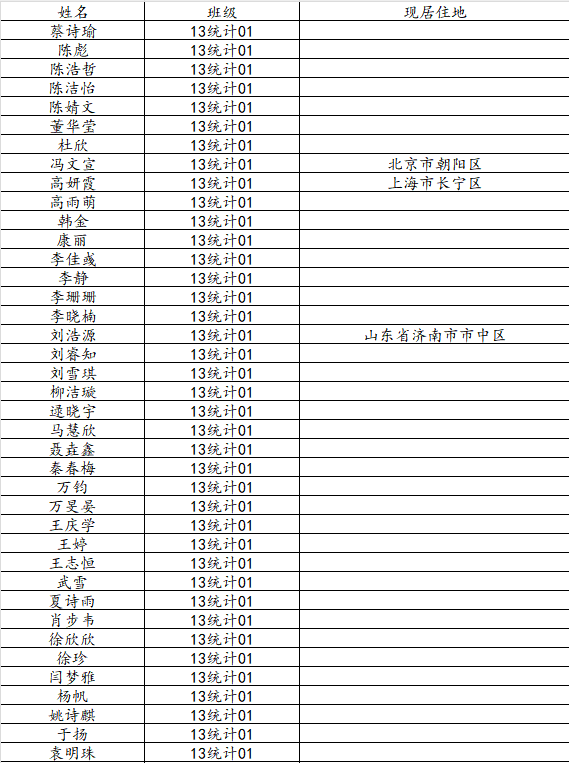beat365中国唯一官网2017届统计学一班校友名录