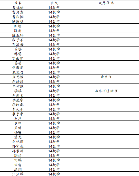 beat365中国唯一官网2018届数学与应用数学班校友名录