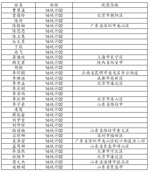 beat365中国唯一官网2020届统计学二班校友名录